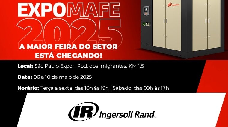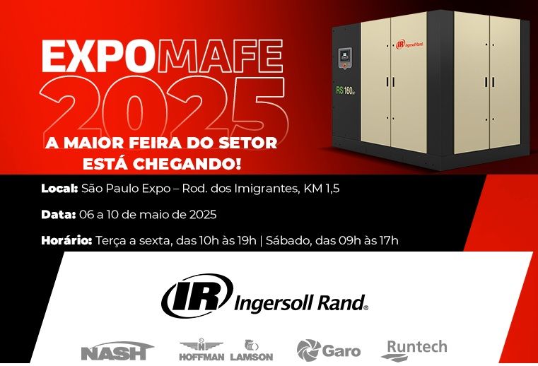 Dos dias 6 a 10 de Maio, no São Paulo Expo, estaremos na EXPOMAFE2025 junto com a Ingersoll Rand apresentando a solução ideal para a necessidade de sua indústria. Não deixe de nos visitar.